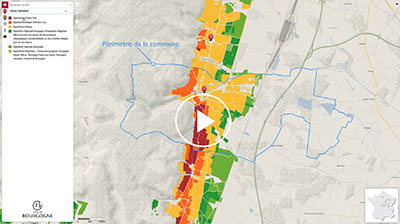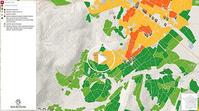 Ce site interactif présente les aires géographiques de production des 84 appellations (AOC) de Bourgogne classées en 3 groupes : 7 AOC Régionales, 44 AOC Villages et 33 AOC Grands Crus.